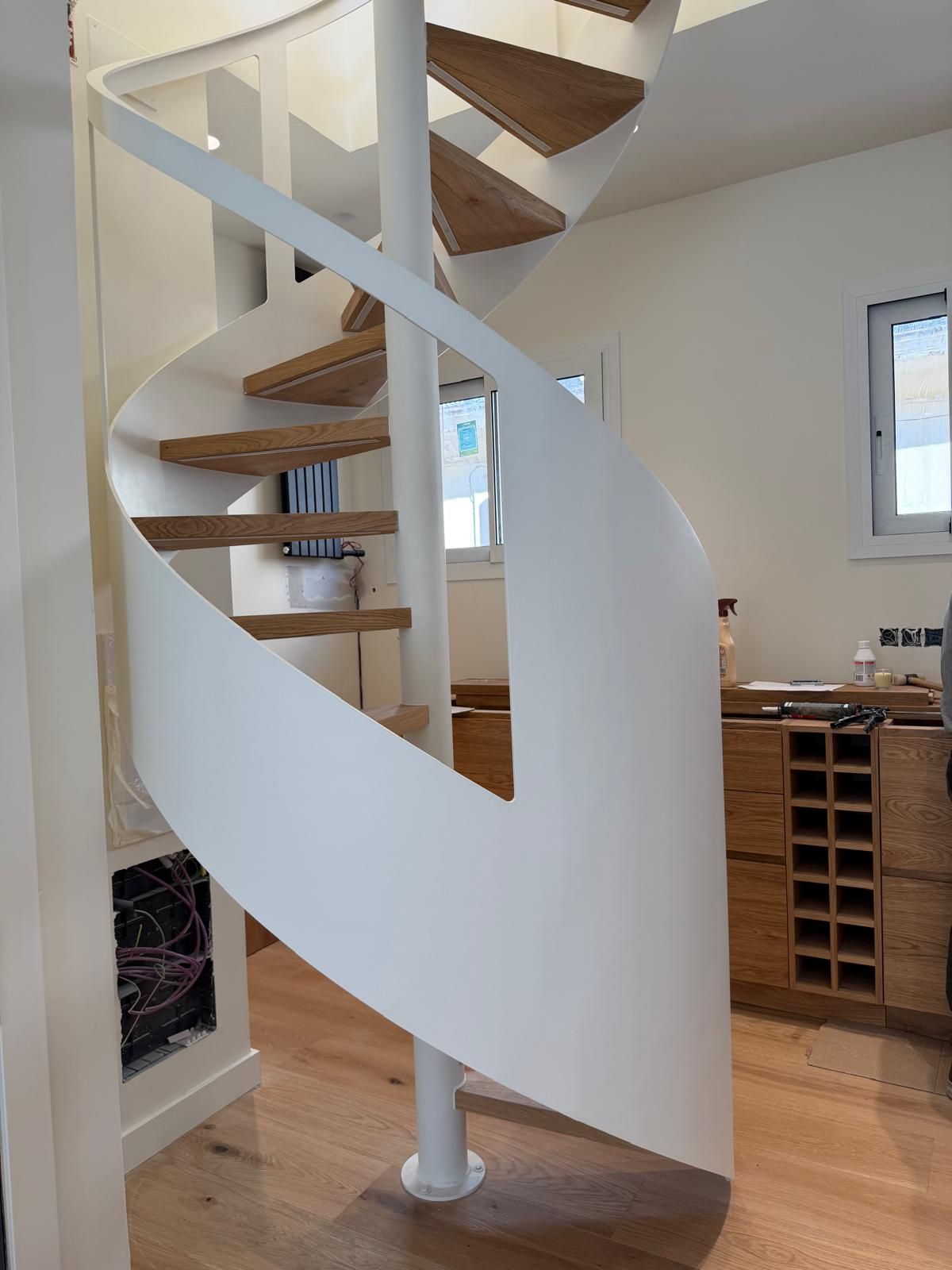 Las escaleras helicoidales se caracterizan por su forma curva continua sin eje central visible, lo que aporta una estética moderna y ligera. Son ideales para: